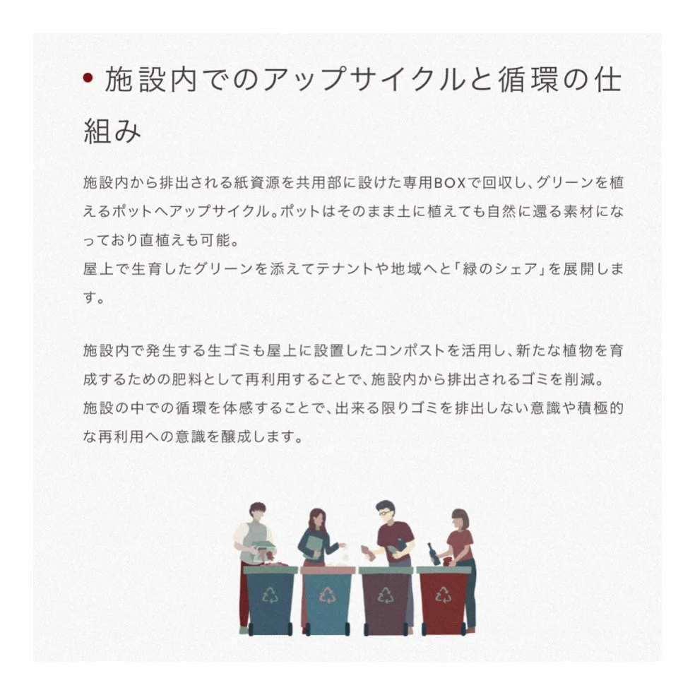 既存建物を活かしながら環境負荷の少ない建材によりリノベーションされた複合施設のwebイラストを担当しました。