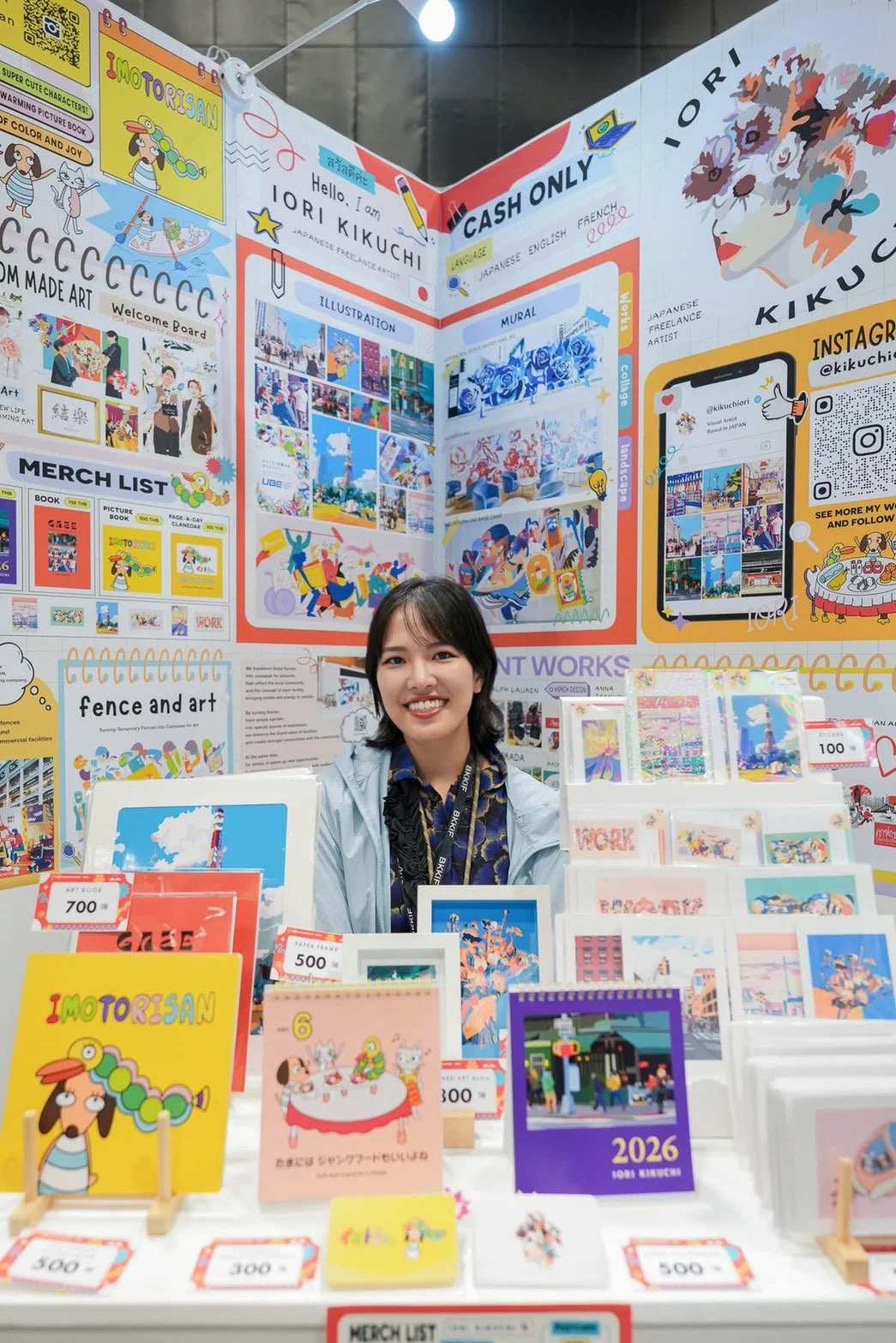Born in Tokyo in 1998, and raised in Shonan area, Iori Kikuchi is a Japanese artist: a painter and an illustrator. She studied at Purchase College, The State University of New York, and graduated from Tyler School of Art, Temple University Japan. Iori was winning the grand prix of Manhattan Portage Art Award 2023 “LOVE” in 2023. She works across different media from traditional to digital while her main practice sits around the idea of painting. Her recent works: Wall/Mural Art for KITTE MARUNOUCHI, FUJITSU and okamura. Live painting performance for luxury brands New Balance、PRADA and RALPH LAUREN. Official merch design for Anna Takeuchi and illustration for Akiko Yano. Illustrations for UBE Corporation and fashion magazines VERY. She has also participated in international art fairs and exhibitions, expanding her practice globally.