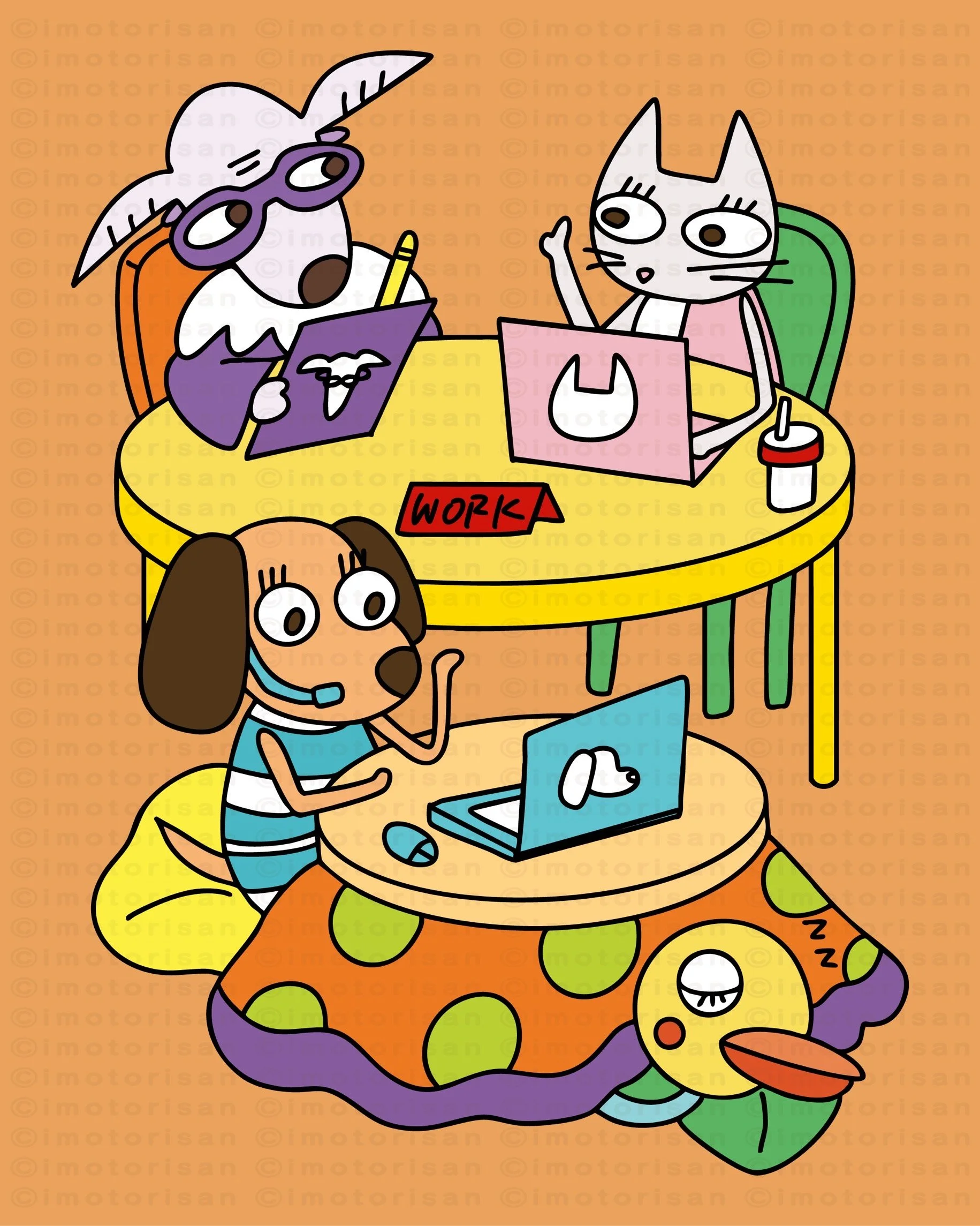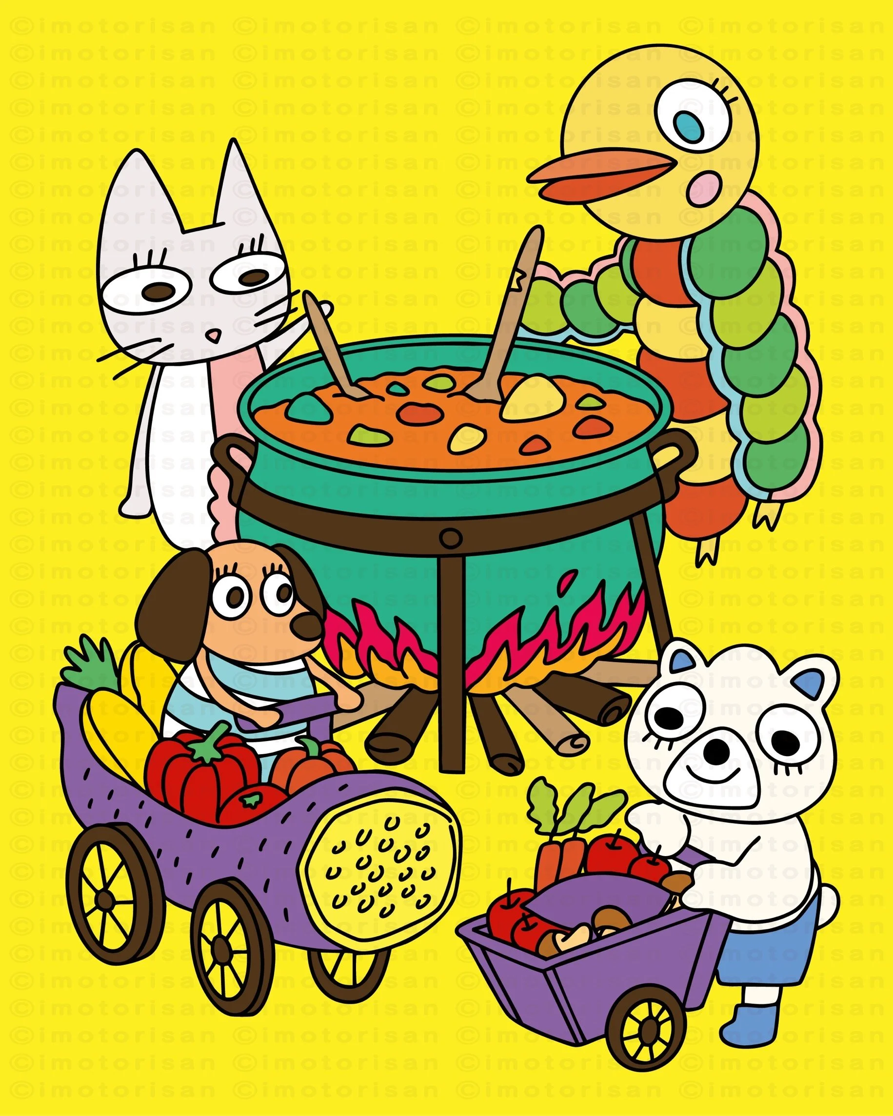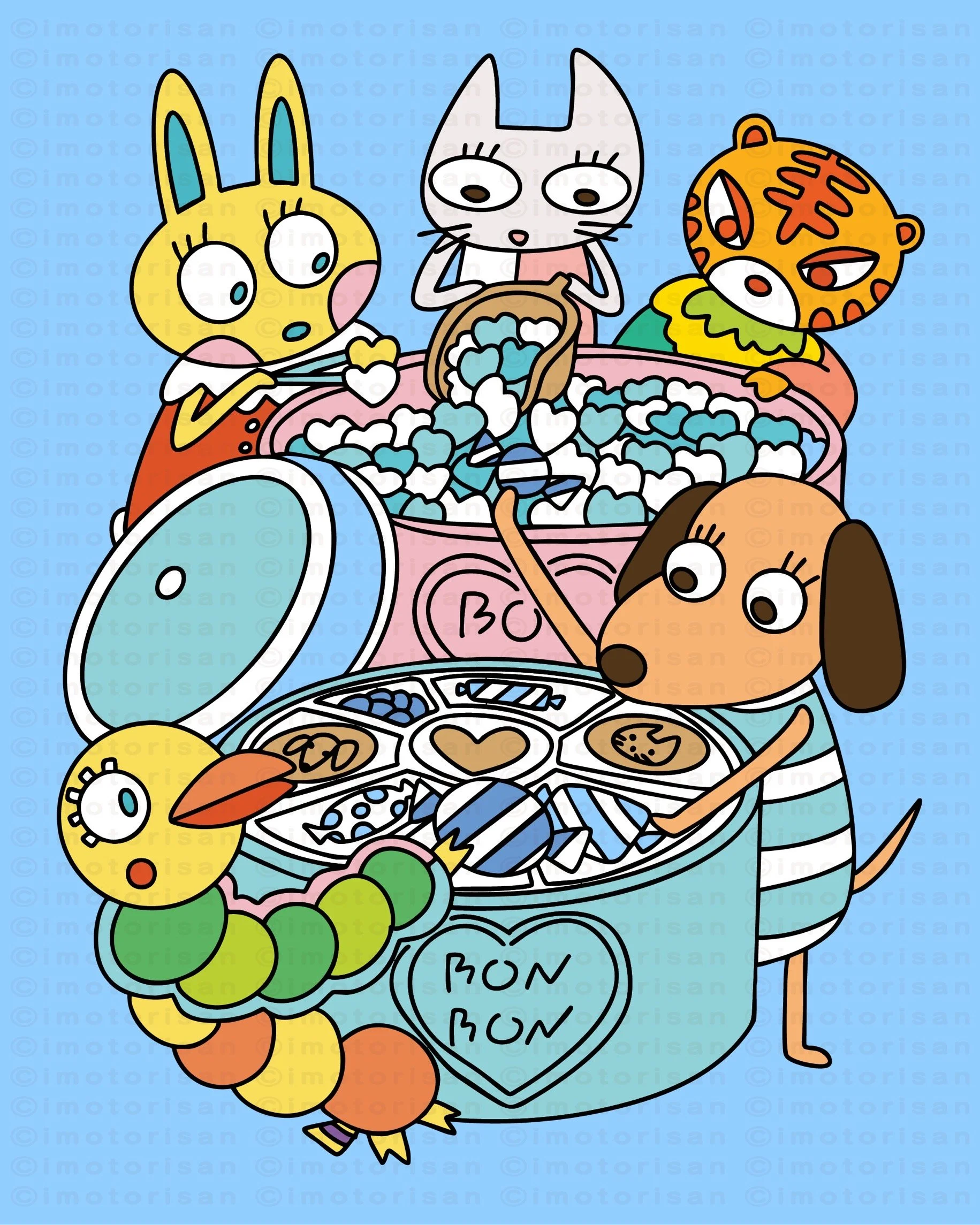 かわいいキャラクターたちのおはなしを描きました。