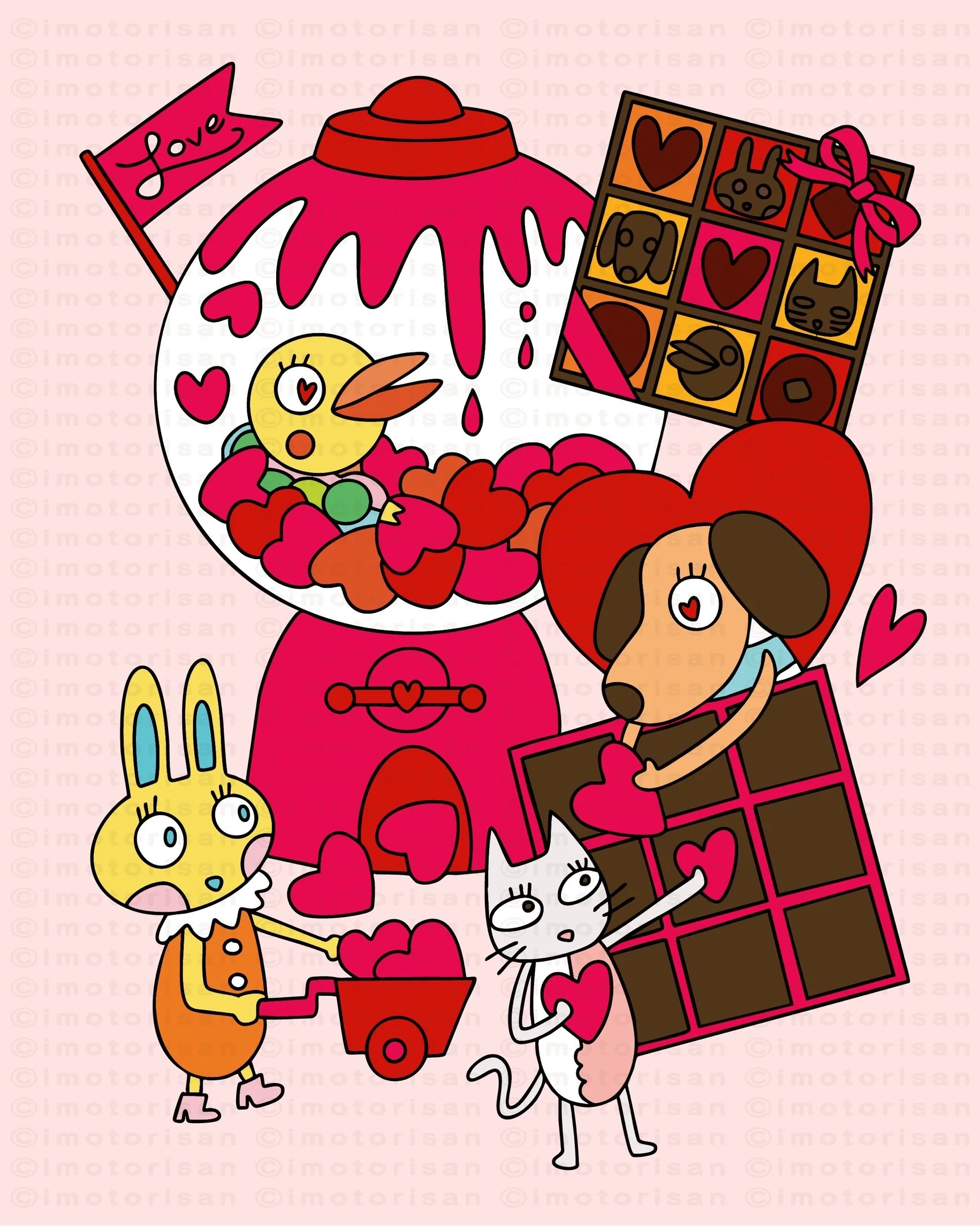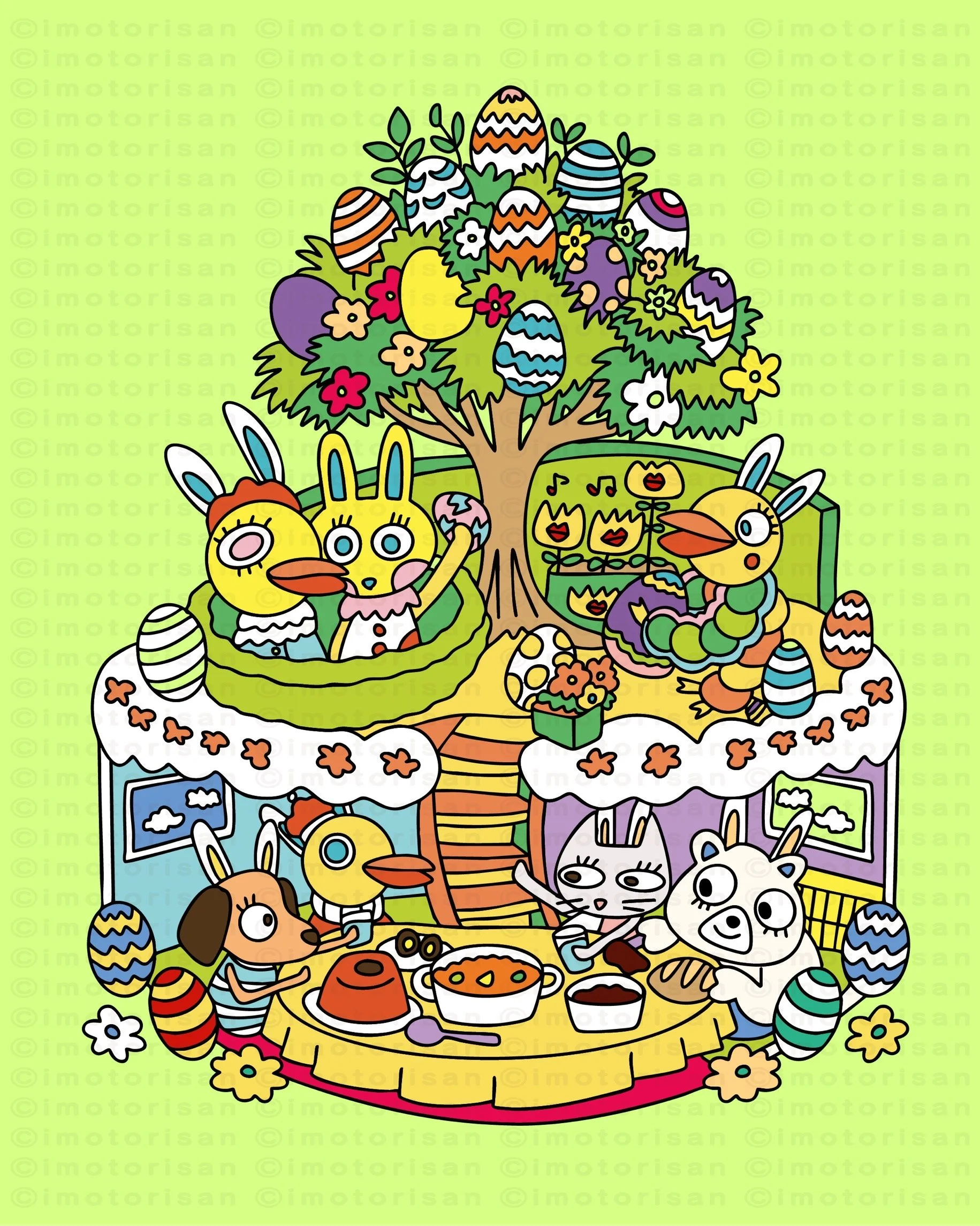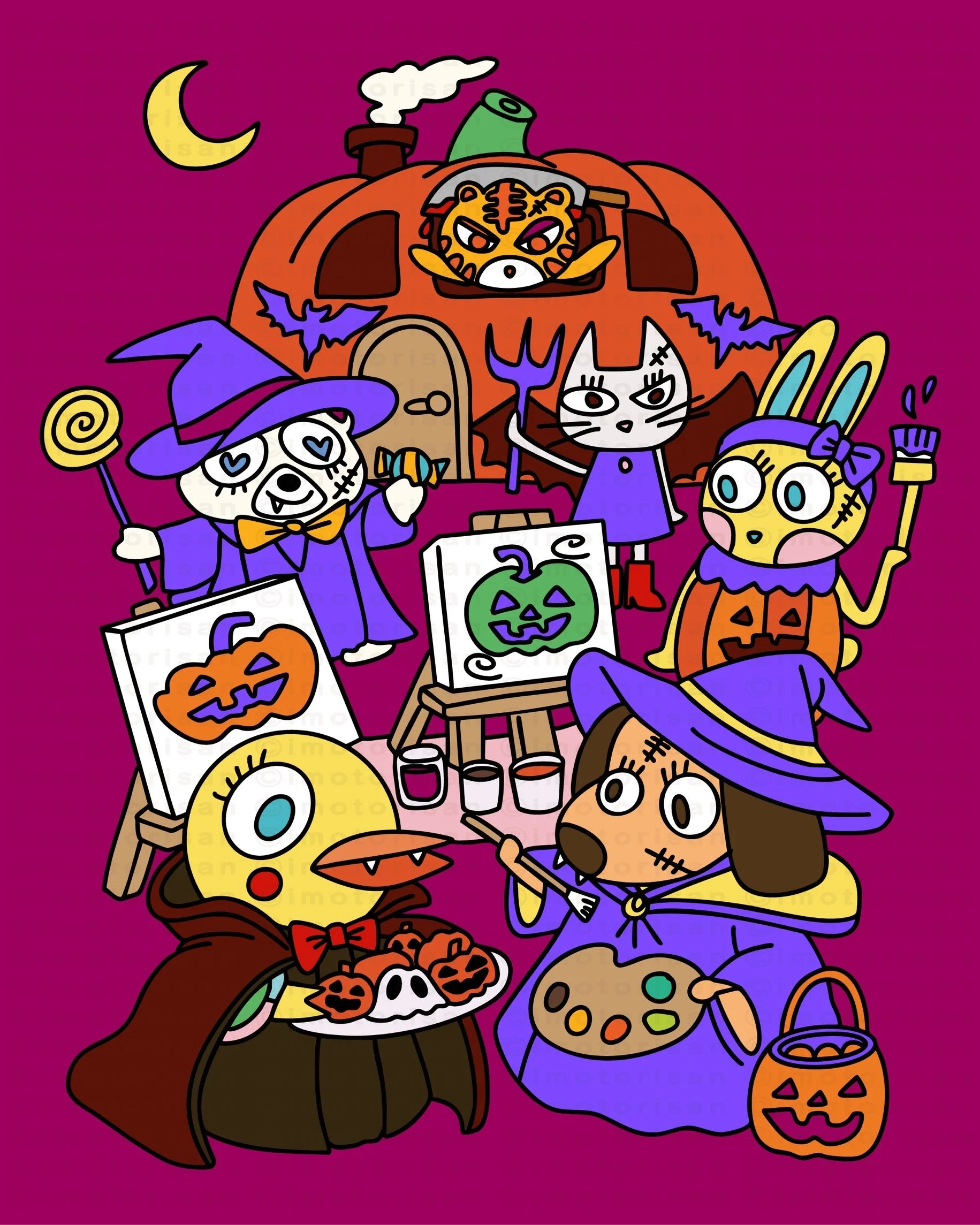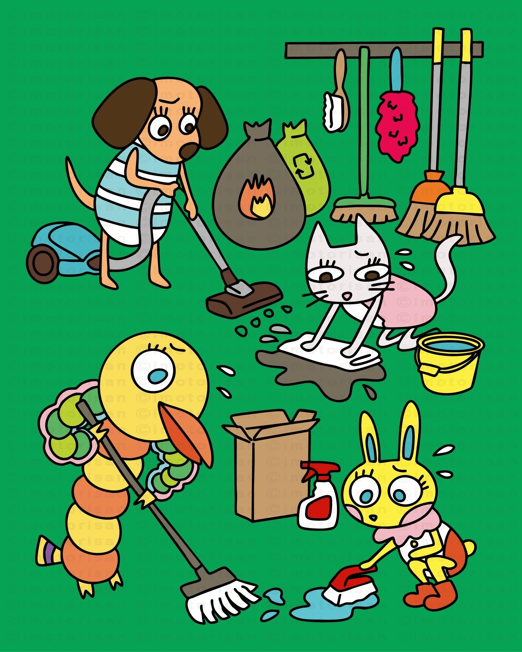 かわいいキャラクターたちのおはなしを描きました。